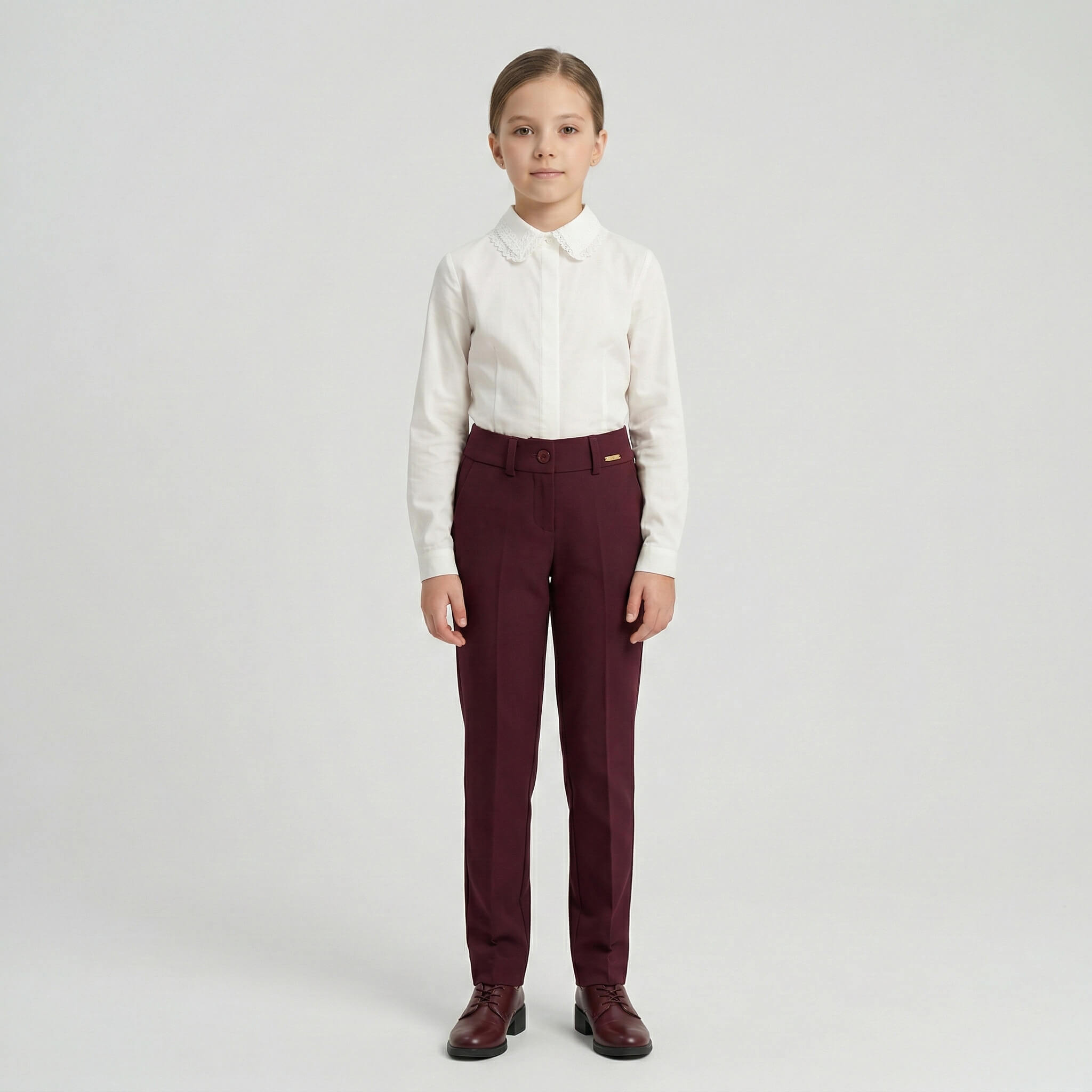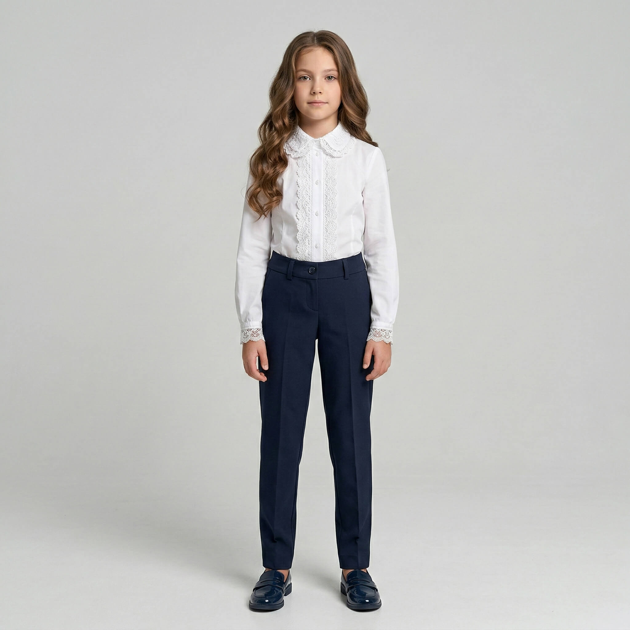 Классические школьные брюки А-1005 от фабрики Евролэнд — это незаменимый элемент базового гардероба современной школьницы. Строгий, но изящный крой позволяет создавать безупречные повседневные образы, легко комбинируя брюки с блузками, жилетами или жакетами.
