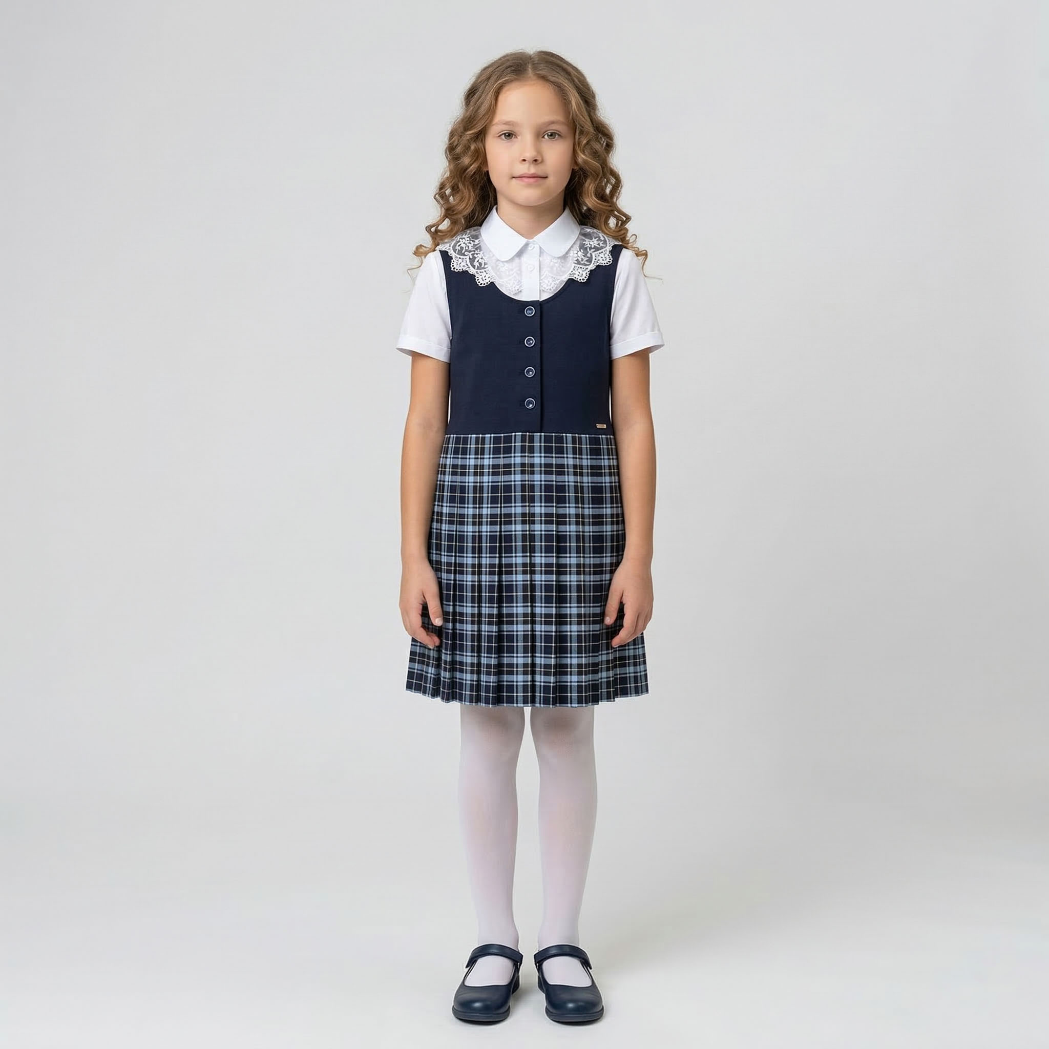 Сарафан А-1113 от «Евролэнд» — это умное сочетание стиля, комфорта и практичности для отличной учебы!