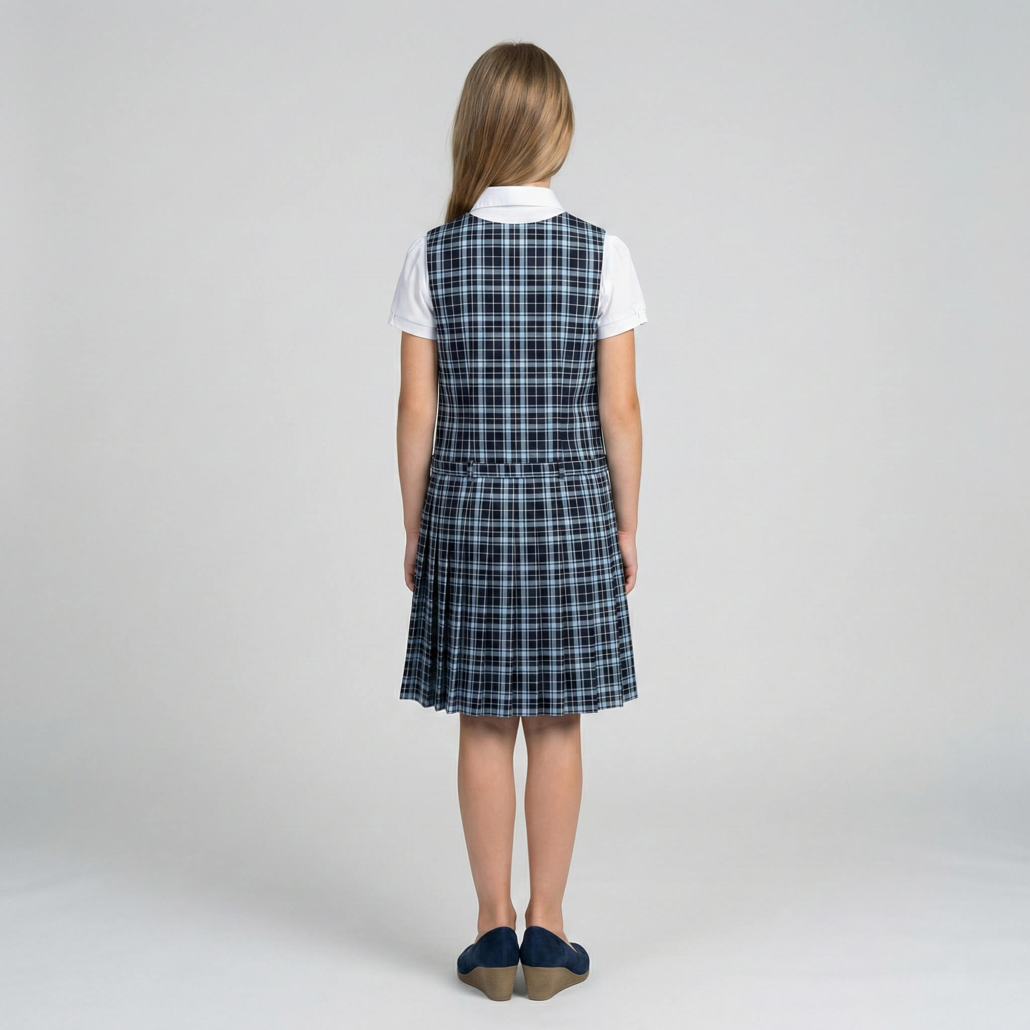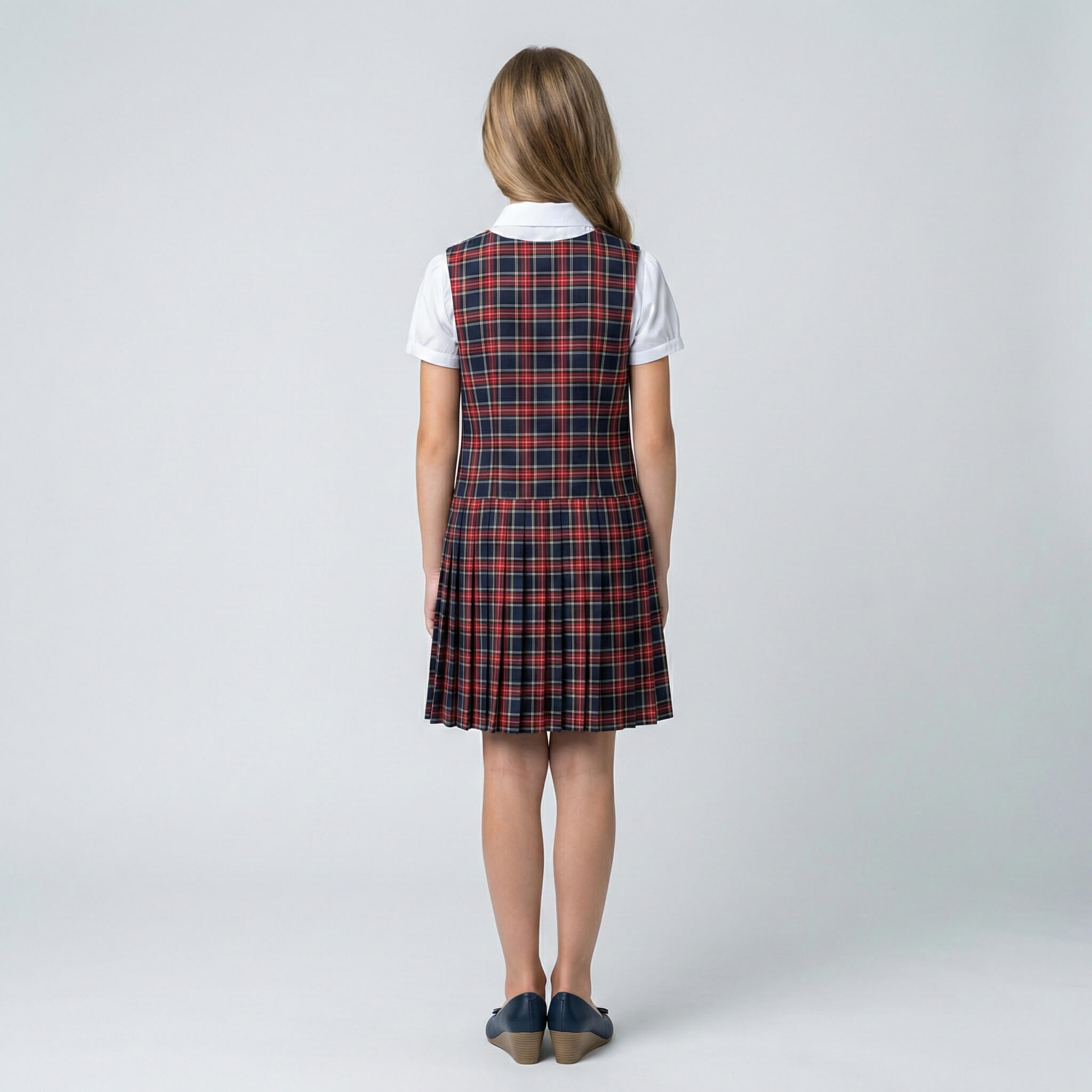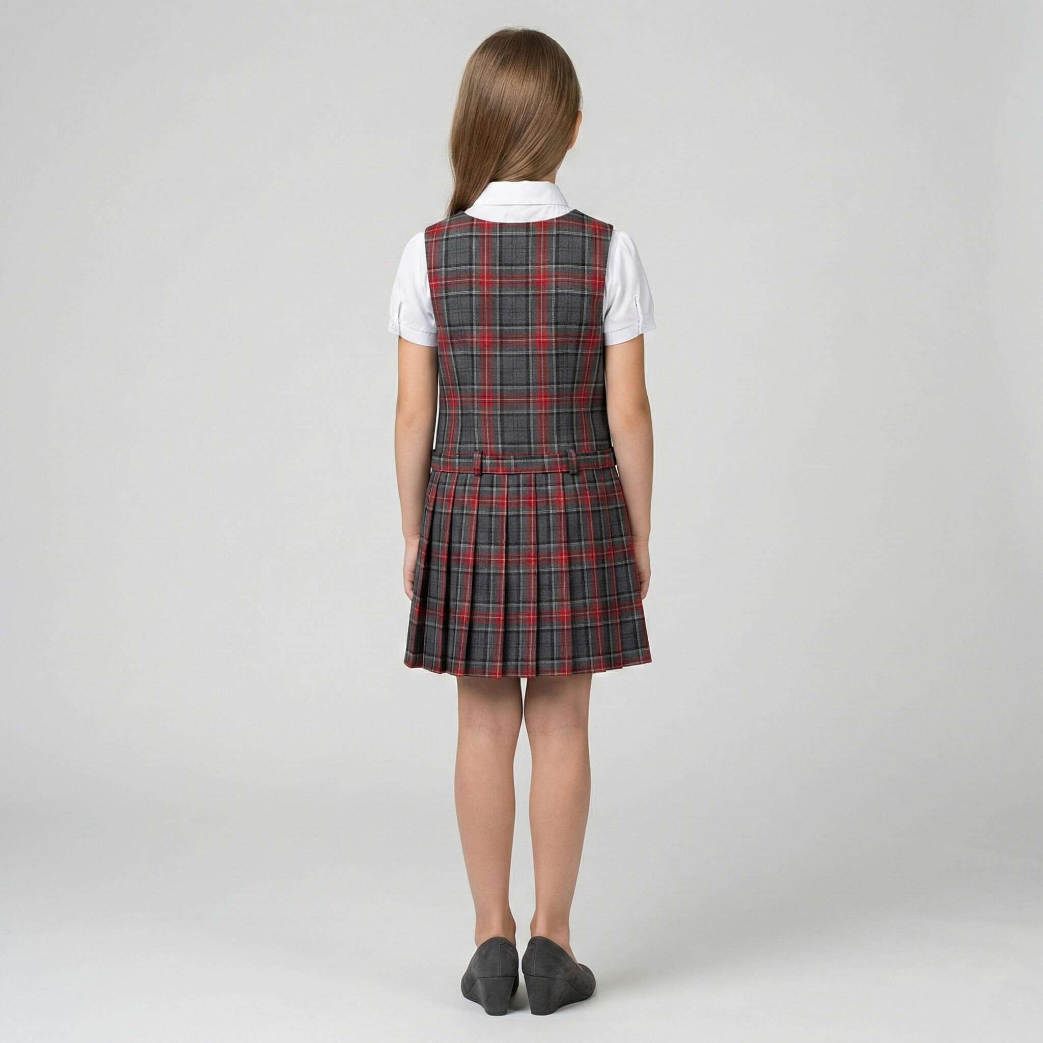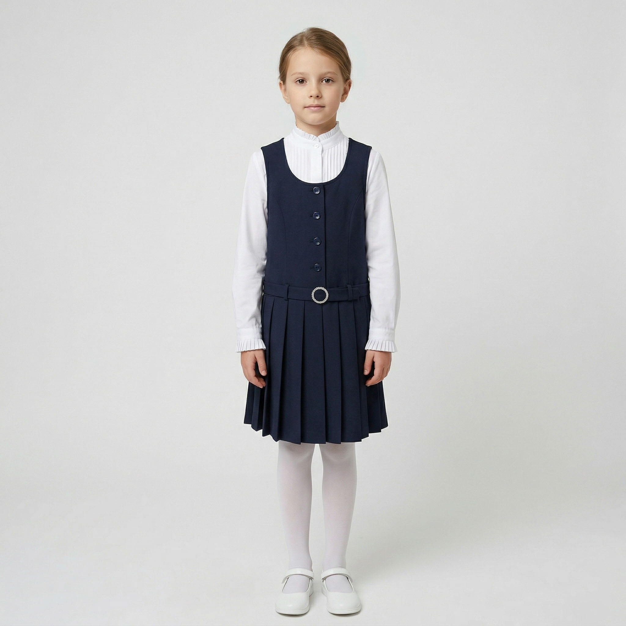 Сарафан имеет удобную застежку на пуговицы спереди, что позволяет ребенку легко и быстро переодеваться самостоятельно. Аккуратный нагрудный карман (на моделях в клетку) добавляет стильный акцент, а плиссированная юбка создает красивый силуэт и не сковывает движений.